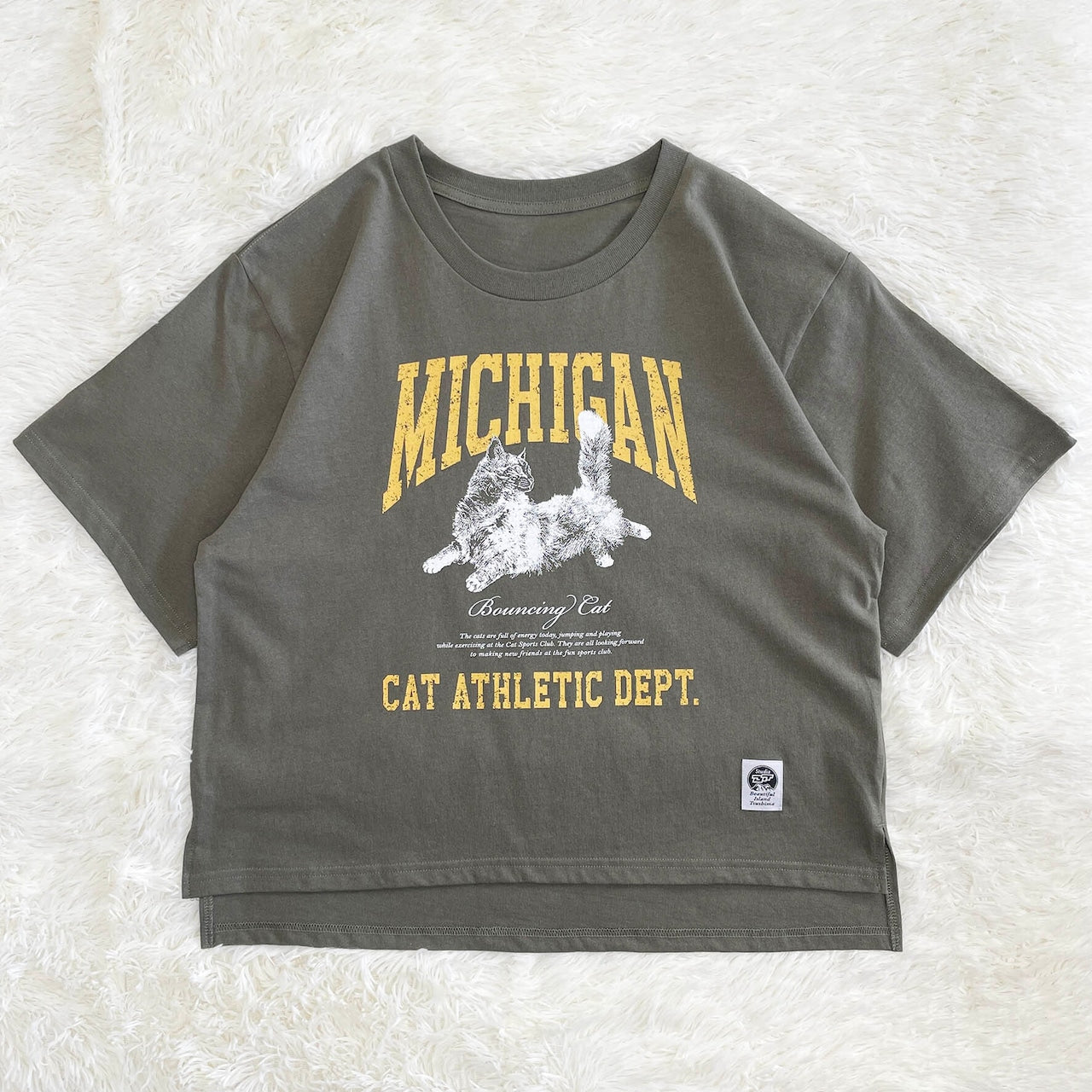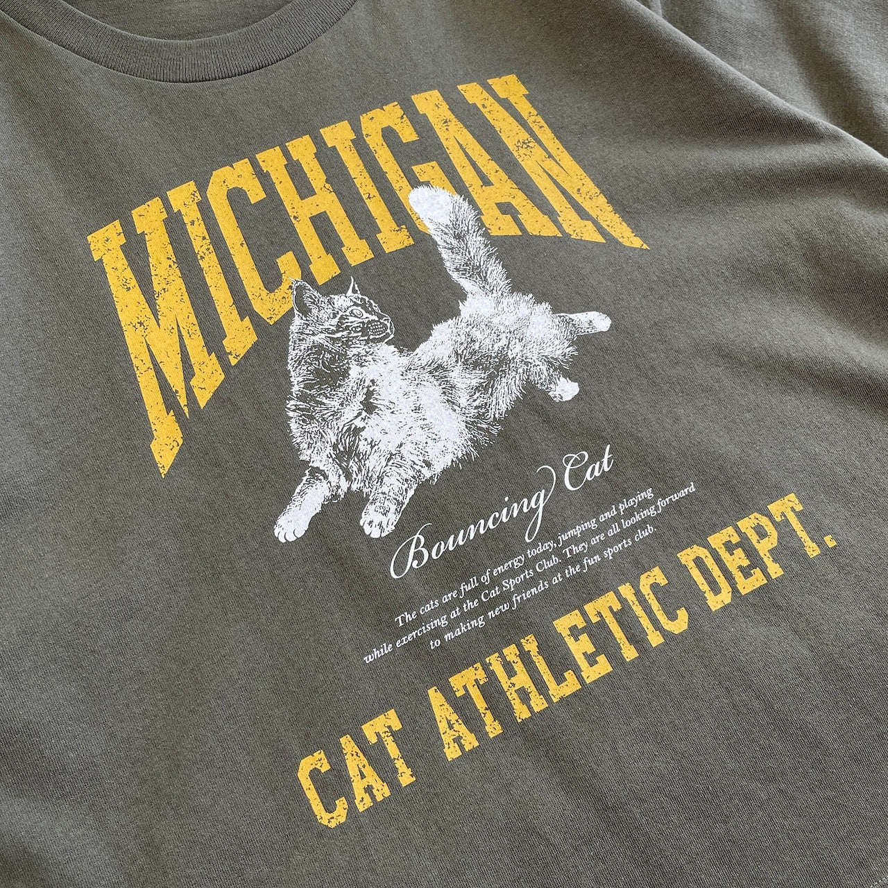 6.2オンス ビッグシルエットTシャツレディースサイズと男女兼用サイズがあり、首周りのリブのデザインが異なります。CAT ATHLETIC DEPTとは猫の運動部という意味です。運動能力の高い猫ちゃんが所属する部活です!ファイト!アメリカン古着コーデがクールです。