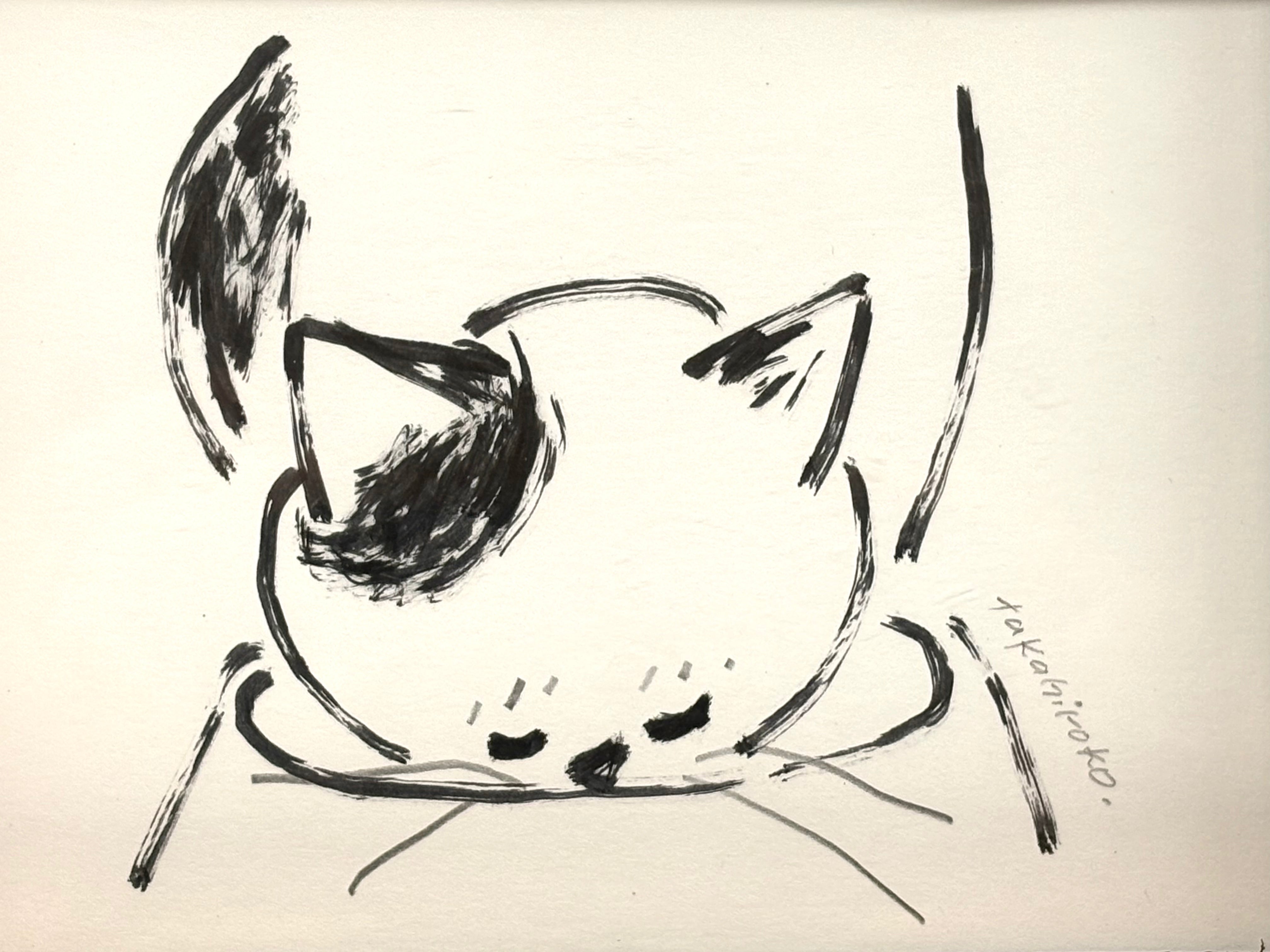 手描きの柔らかなタッチとシンプルな線で、猫の仕草や感情が生き生きと表現されています。