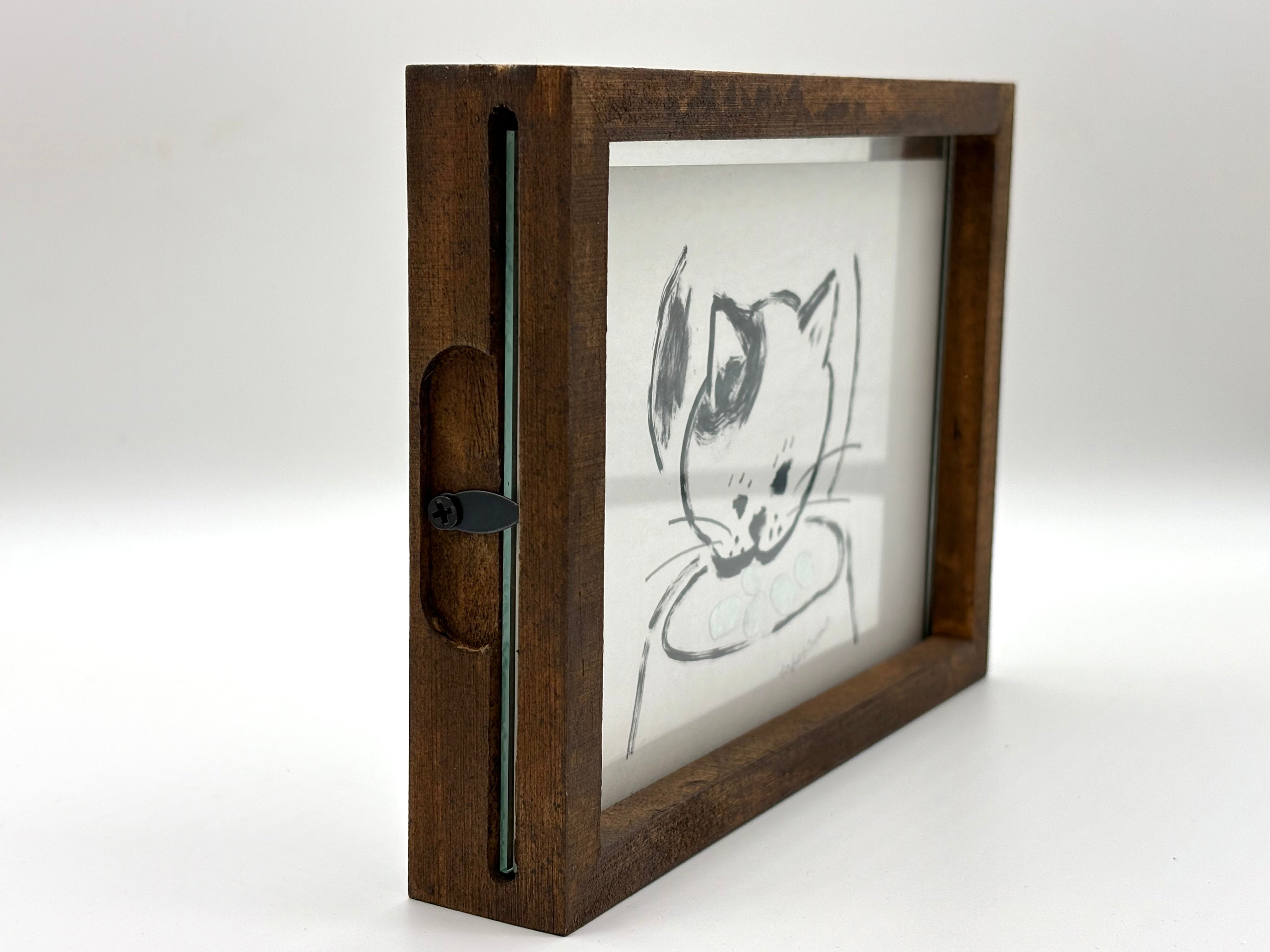 猫の愛らしい日常を切り取った両面額のアート作品です。
