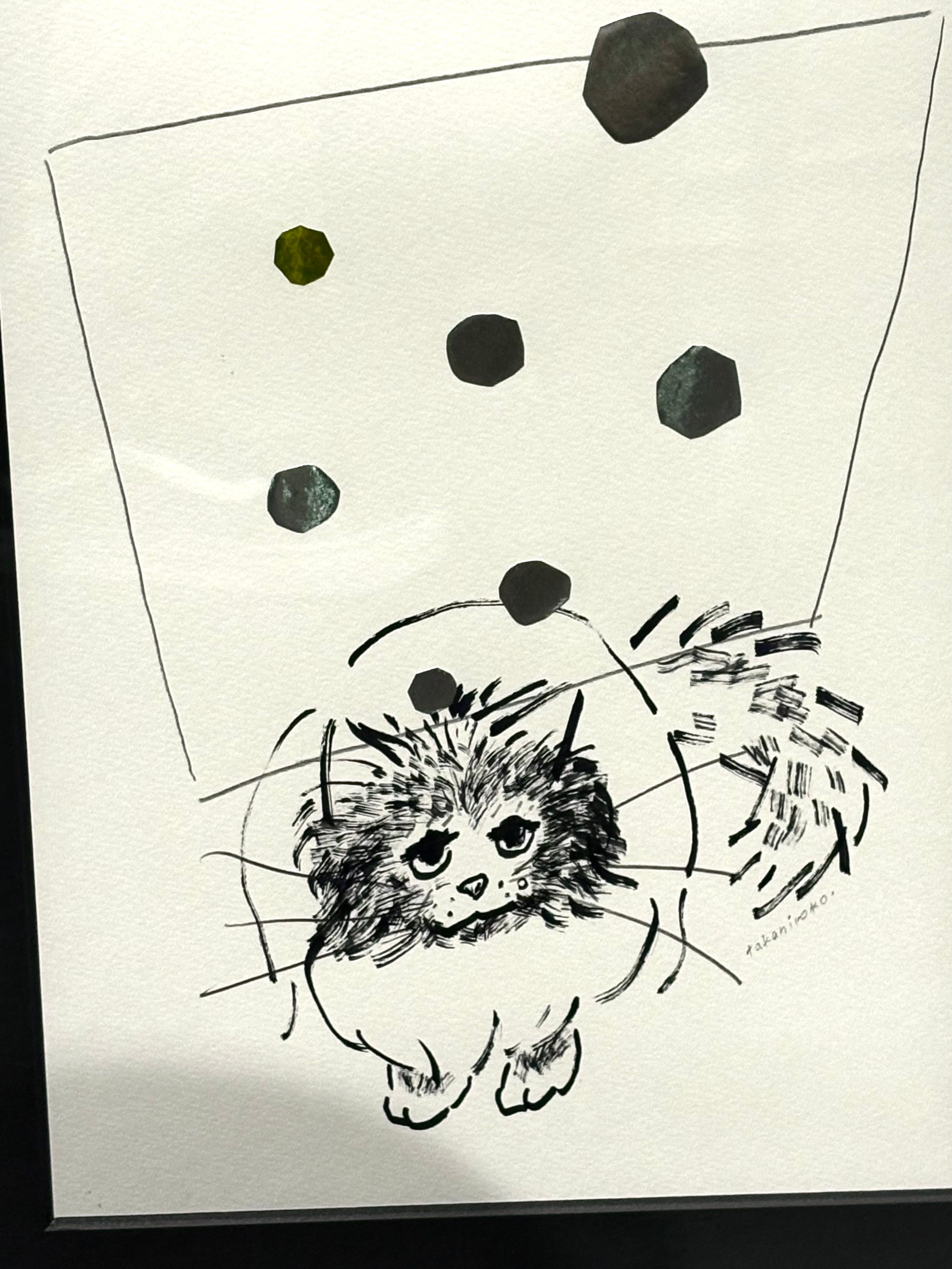 猫が何かをじっと見つめている、静かな瞬間を切り取った作品です。