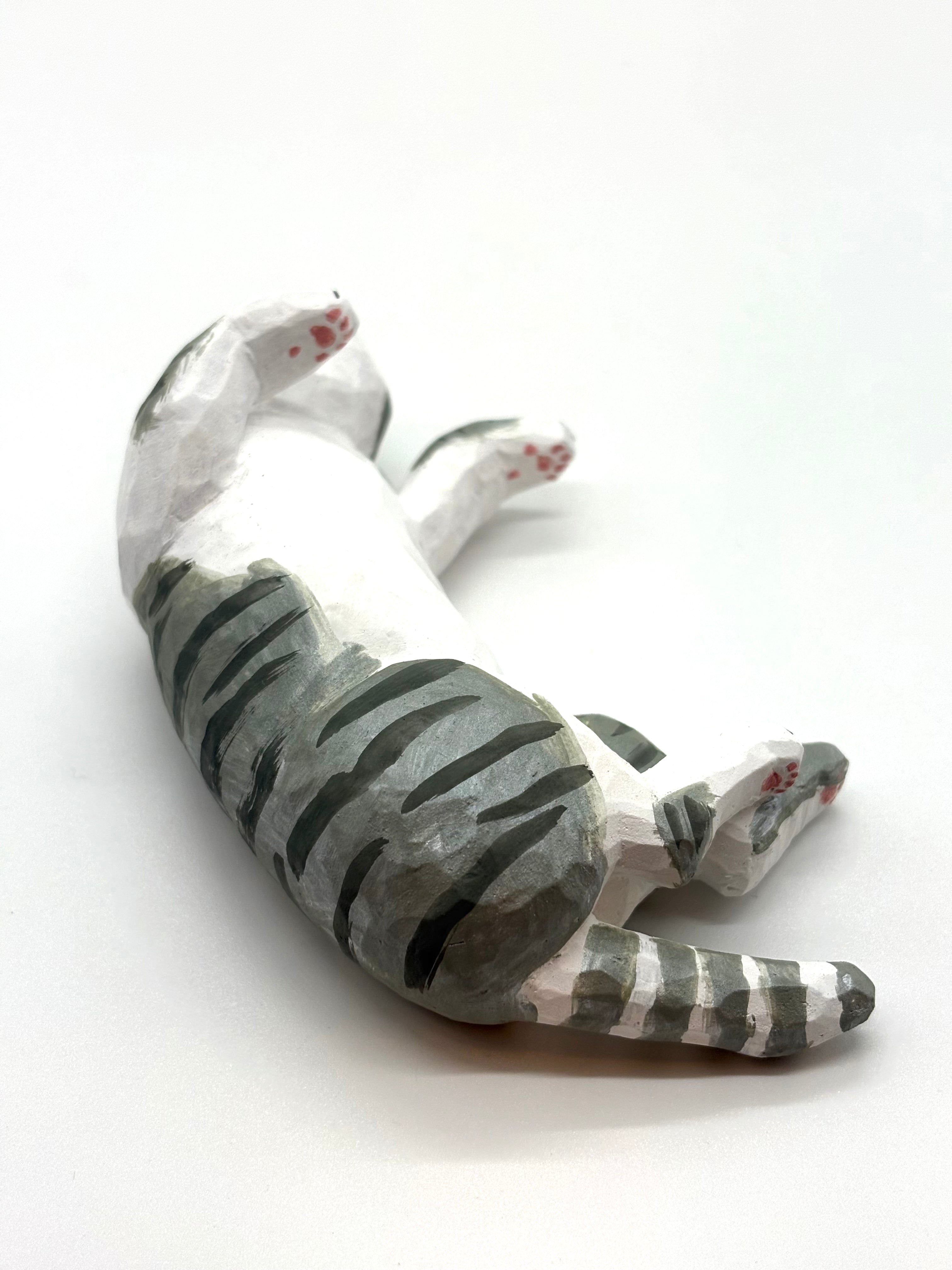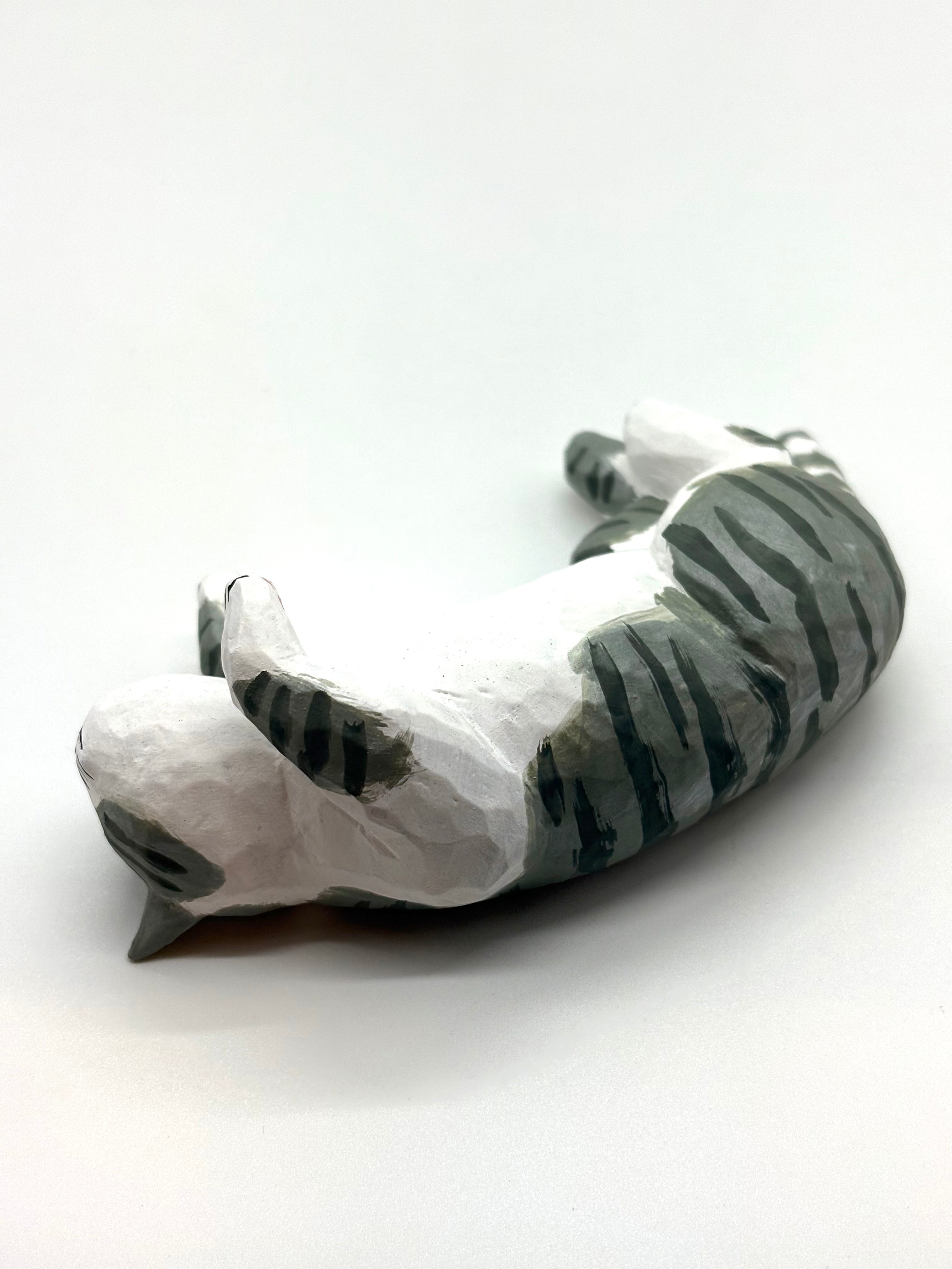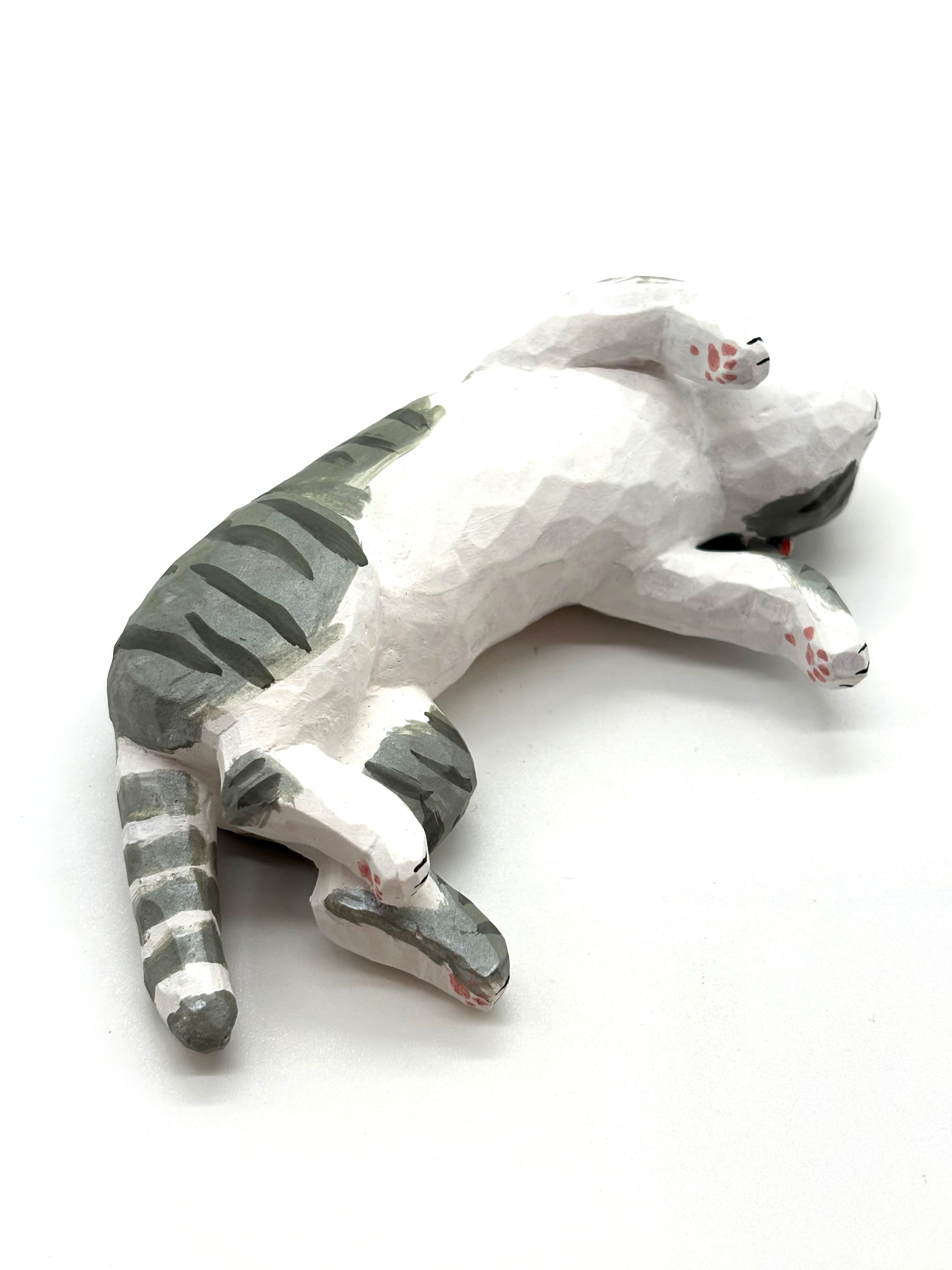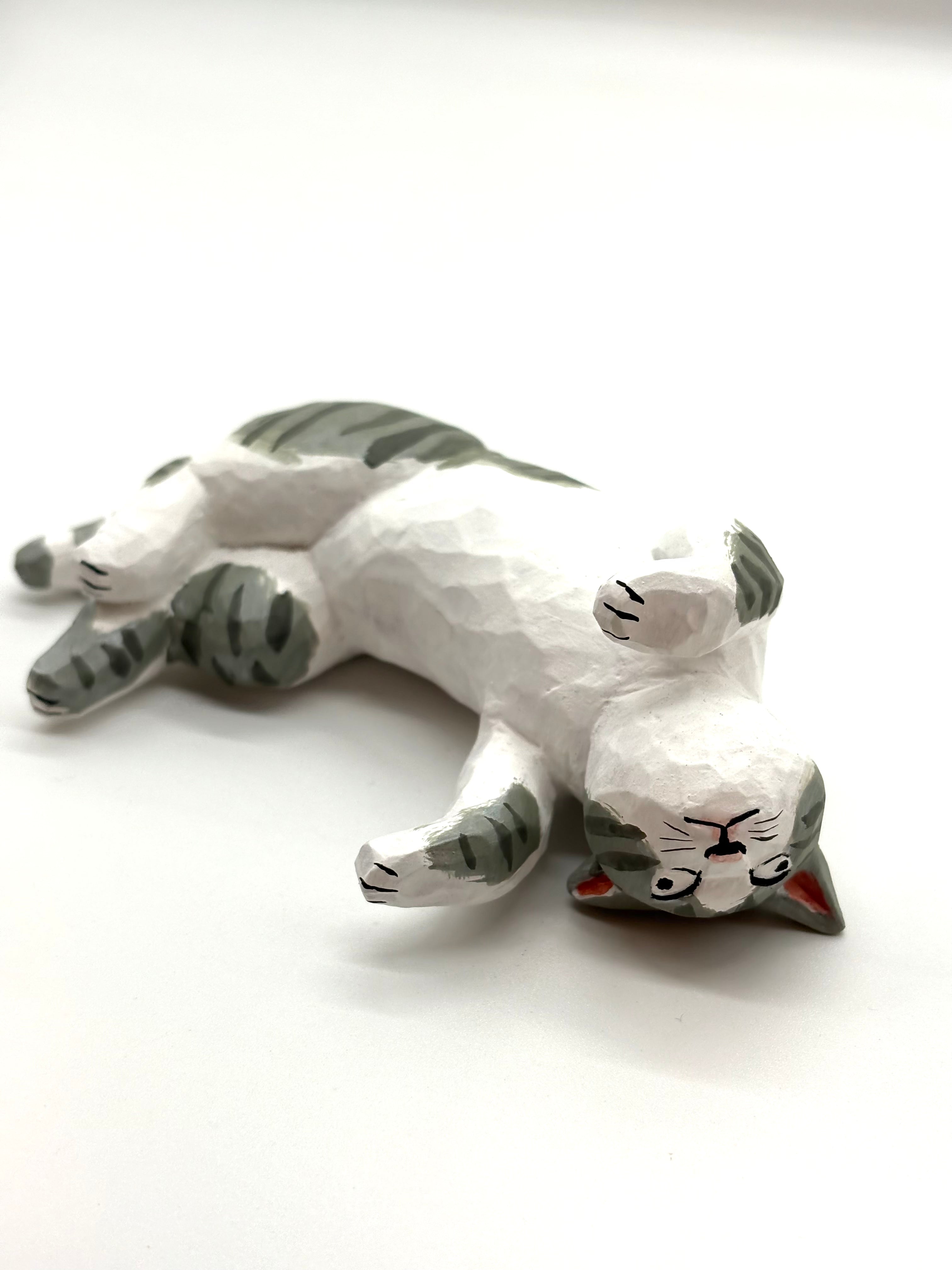 マタタビに酔いしれてゴロンと転がる猫の姿。 お腹を見せて手足も投げ出し、まるで夢見心地なリラックスタイム。 幸せそうな“酔いどれポーズ”に、見ているこちらも思わず笑顔になる作品です。