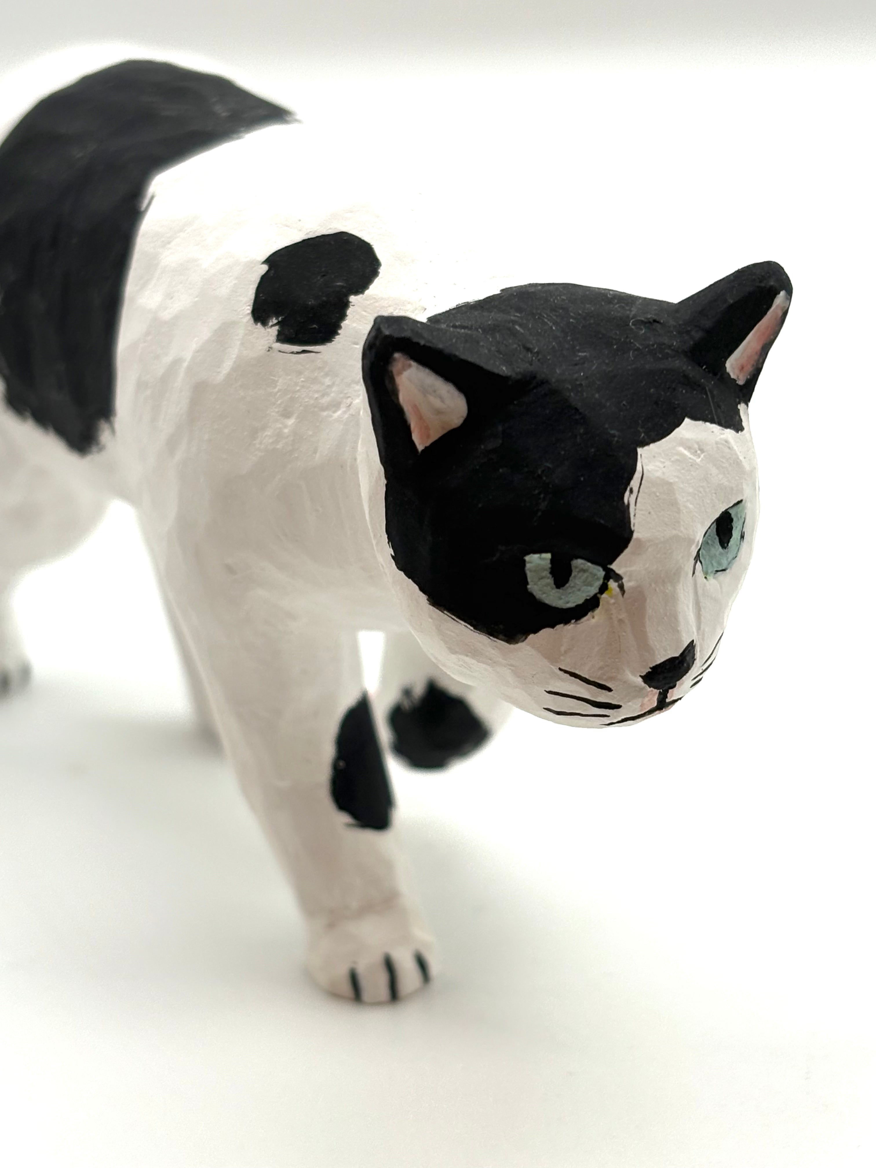 堂々と歩く白黒猫。 でも本人(猫)はきっと「自分はライオンだ!」と思っているに違いありません。 小さな体に秘められた大きなプライドとユーモラスな勘違いが愛おしい作品です。
