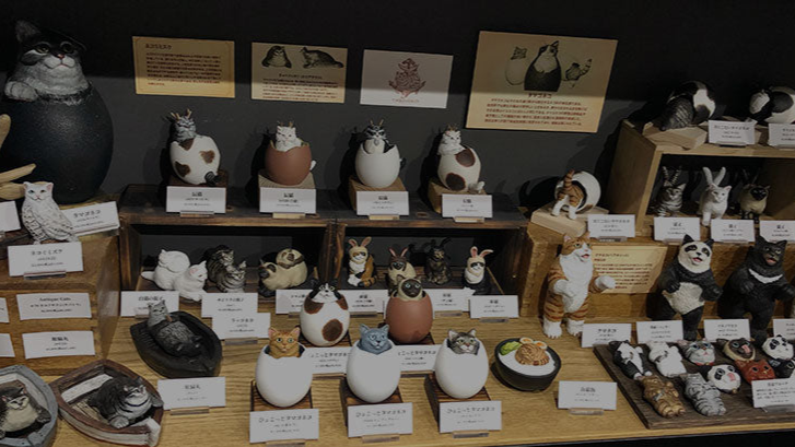 旅猫屋の旅造形作家。新種の猫オブジェ、ウミアック(皮舟)、木工作品など制作。