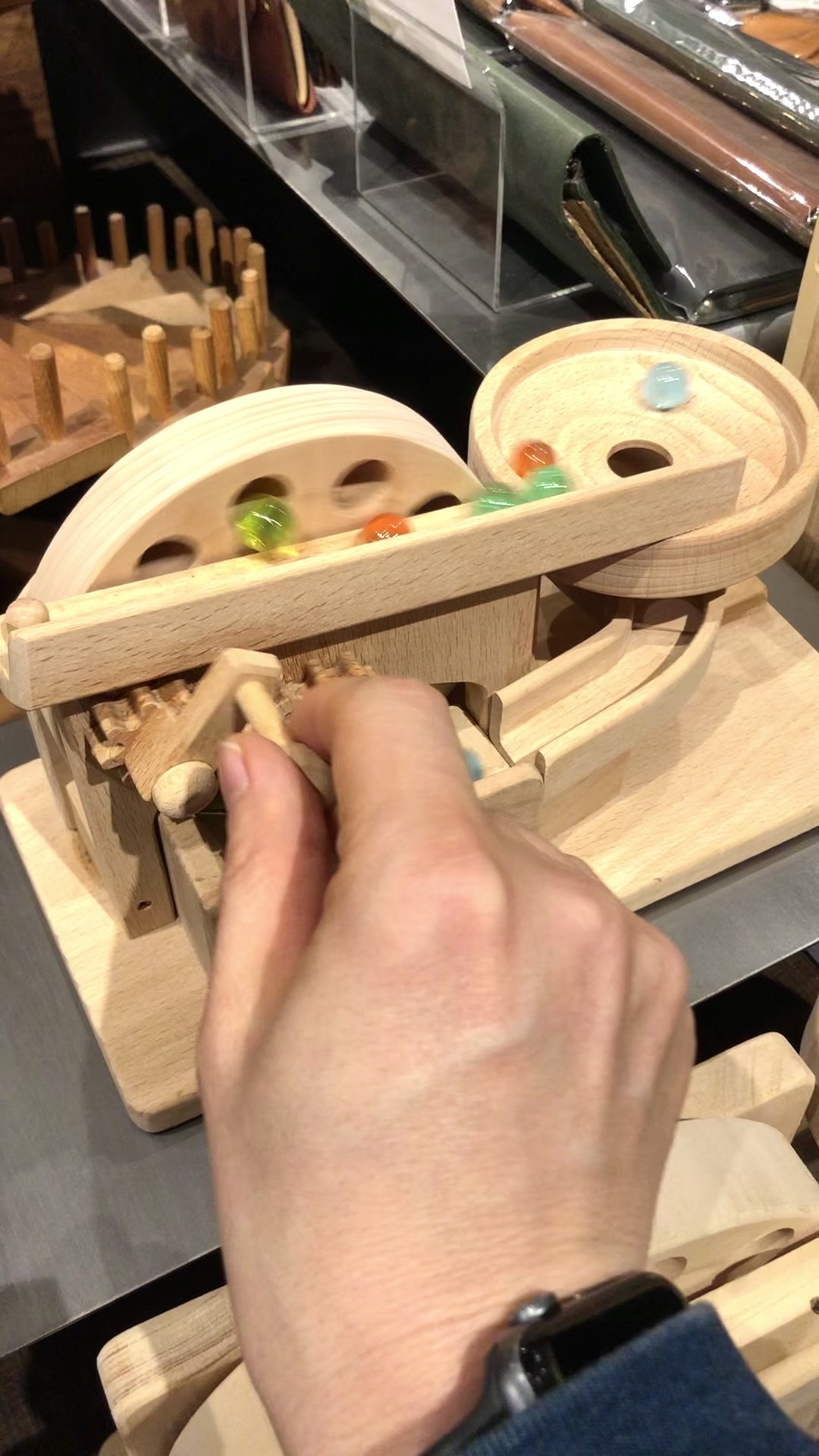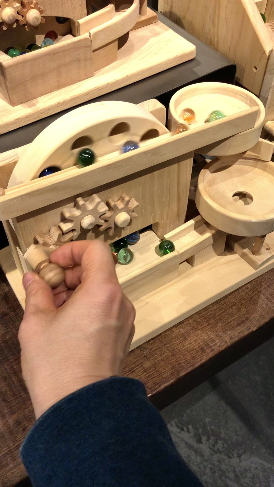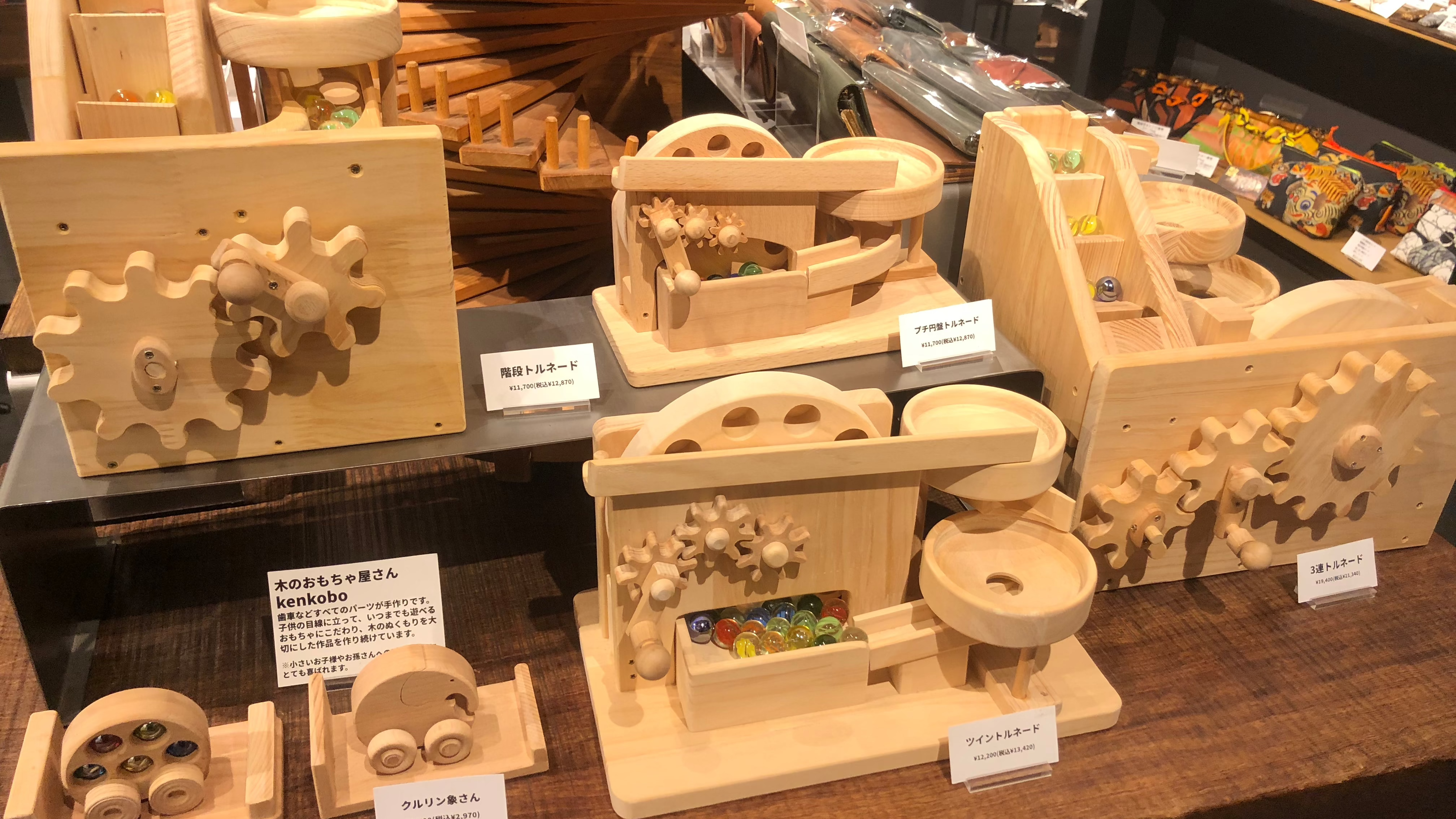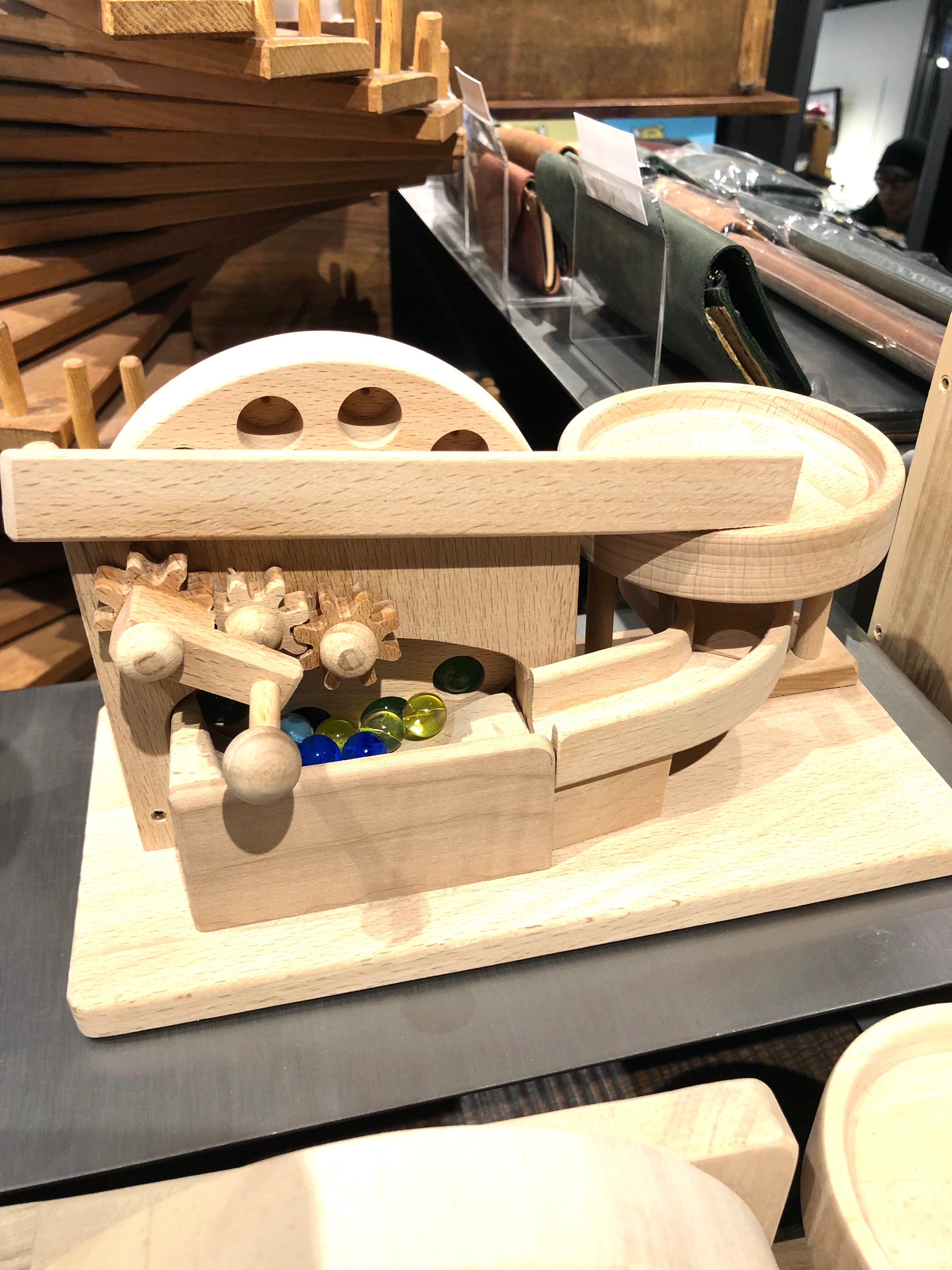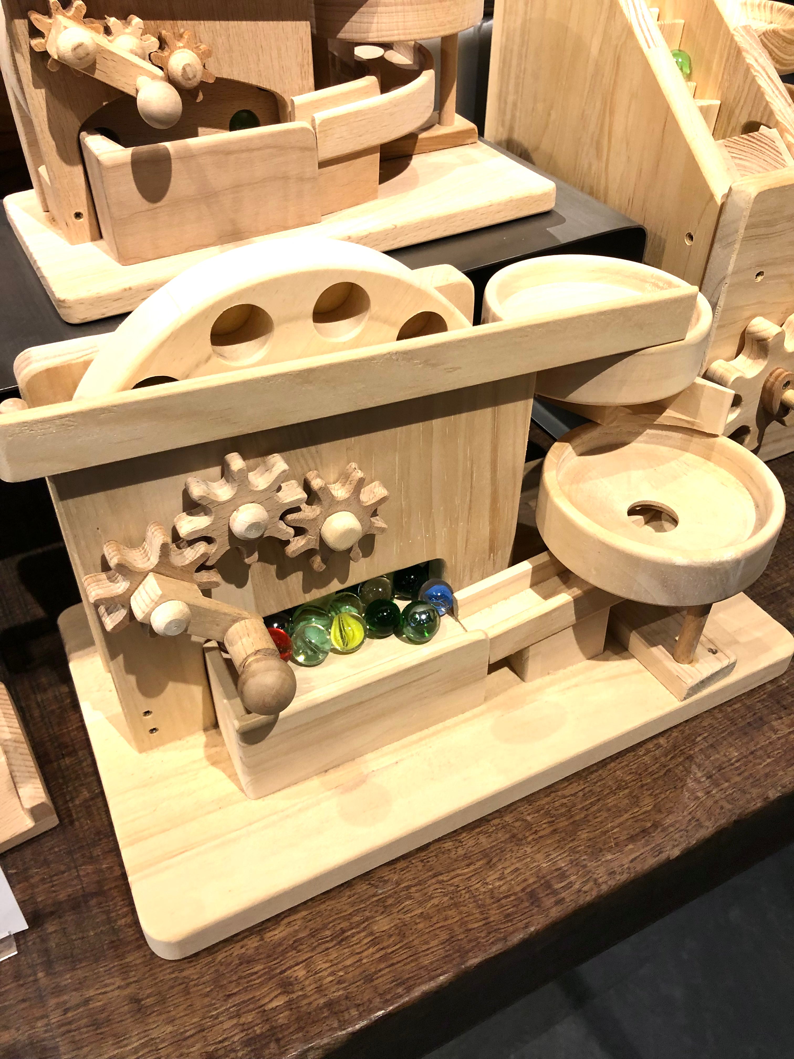 歯車などすべてのパーツが手作りです。 子供の目線に立って、いつまでも遊べるおもちゃにこだわり、木のぬくもりを大切にした作品を作り続けています。