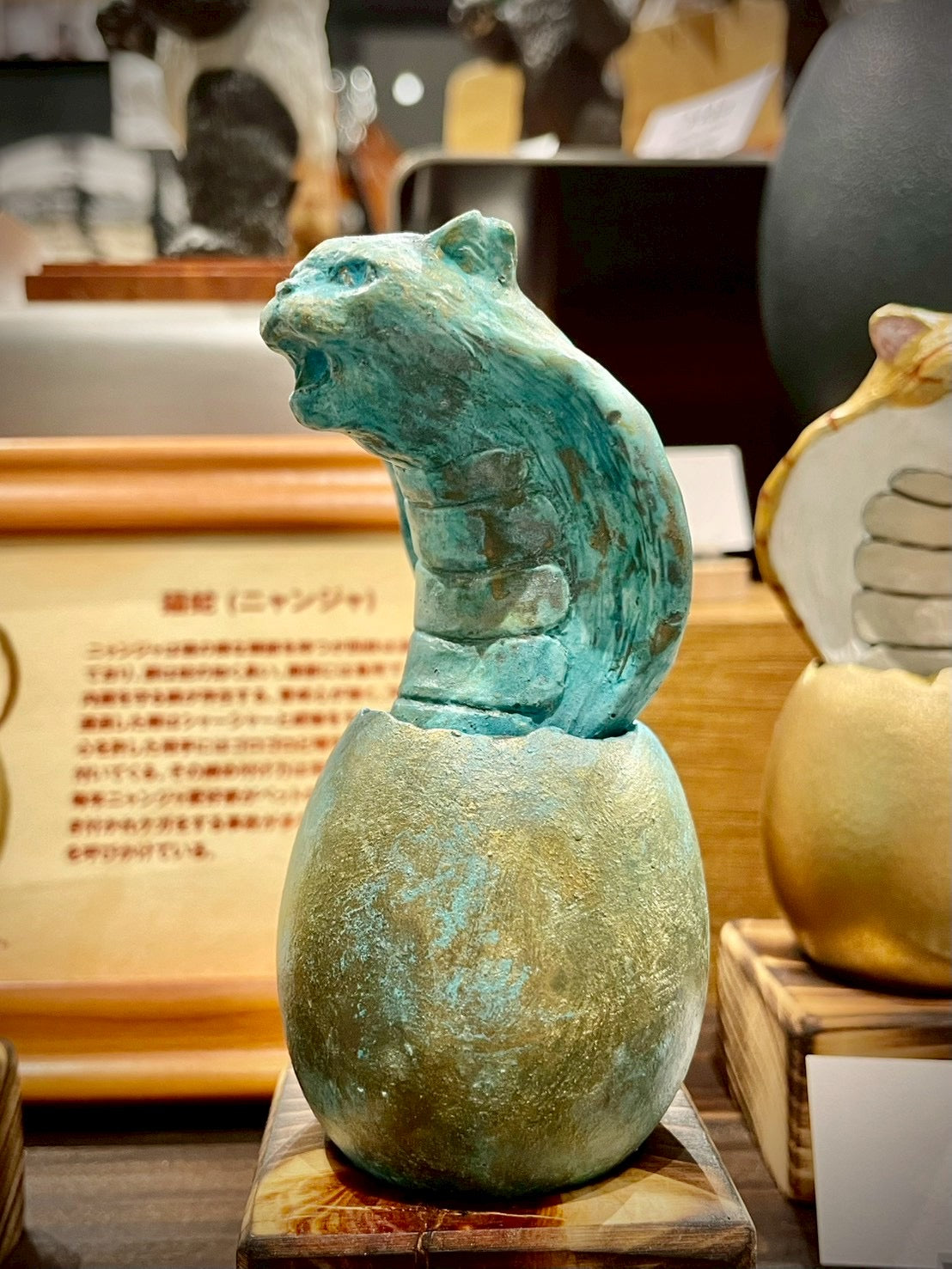 ニャンジャは猫の様な頭部を持つが四肢は退化しており、胴は蛇の如く長い。腹部には急所である内蔵を守る硬い鱗が存在する。