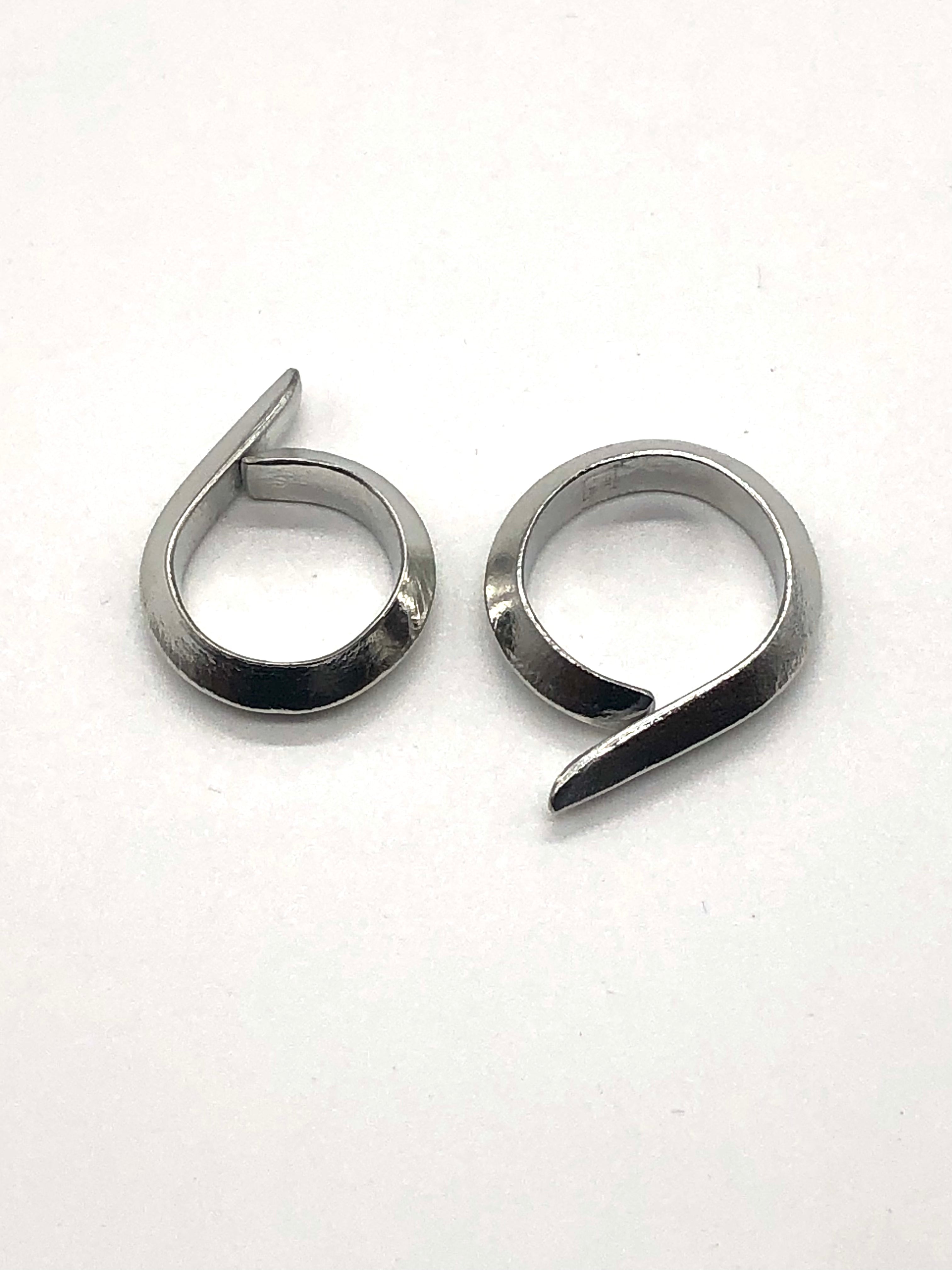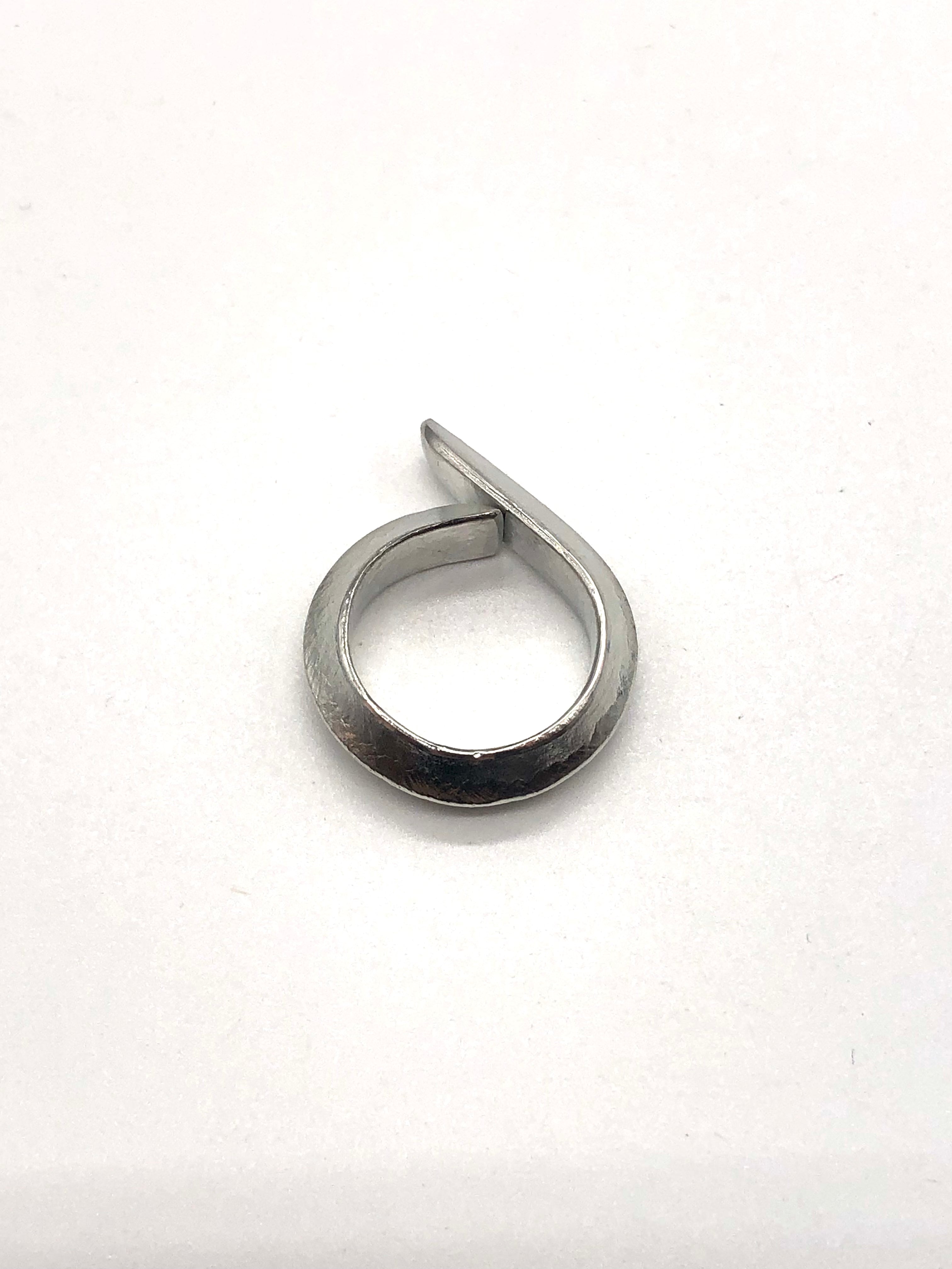 飛び出したシェイプのデザインが印象的な指輪。 裏に回せばシンプルでも楽しめます。 錫の柔軟性を活かしたフリーサイズで身に着けられる指輪シリーズ。 サイズフリーなので贈り物にも最適です。 ※LとSの二種類のフリーサイズ Lサイズ:22号を基準に数号分の範囲で曲げて調節可能 Sサイズ:13号を基準に数号分の範囲で曲げて調節可能
