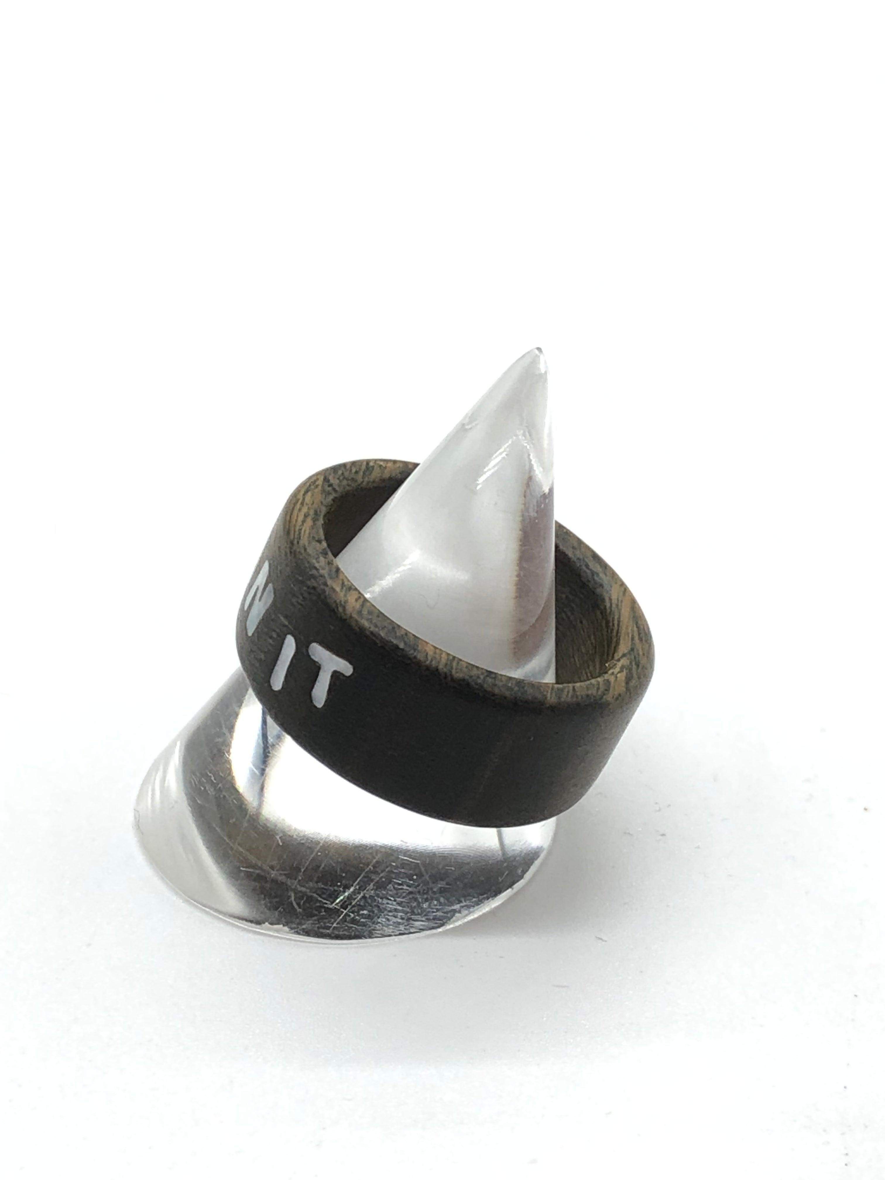 天然木を削り出し、削った貝殻を埋め込みました。 見る角度によって貝がギラリと輝きます。使用木材はインディアンローズウッド、 ブラックウォルナット、パロサント、オリーブです。パロサントは紫外線で緑の 濃さが変わる不思議な木です。21号、16号、13号のラインナップです。 クールな英語のスラングをお楽しみください。