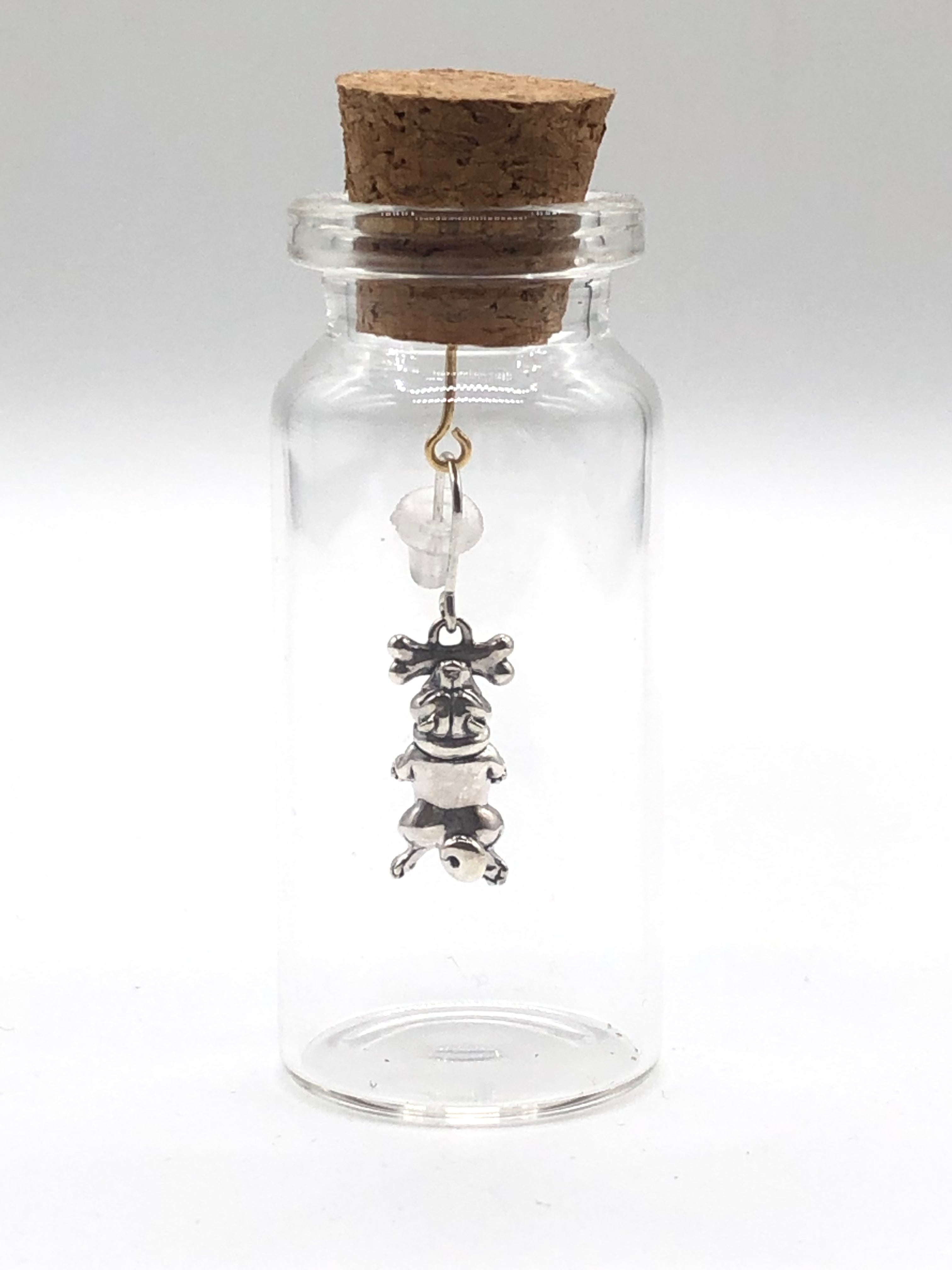 不細工な顔の柴犬が骨に噛みついて、ぶらぶら揺れる犬のピアスです。