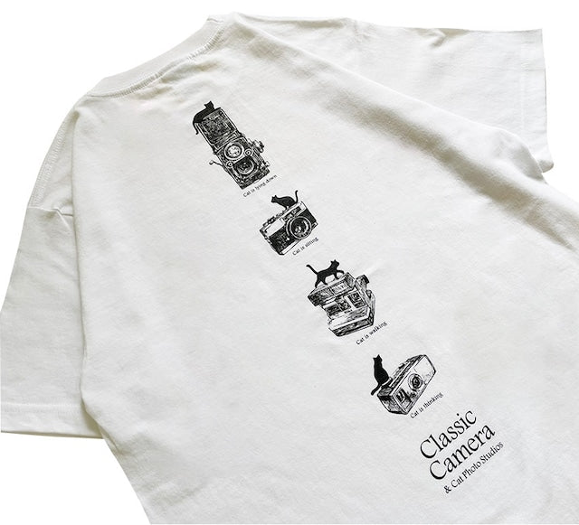 重量感のあるクラシックカメラと猫ちゃんのツーショットがカッコカワイイ一枚です。モノトーンコーデでクールに決めて下さい。
