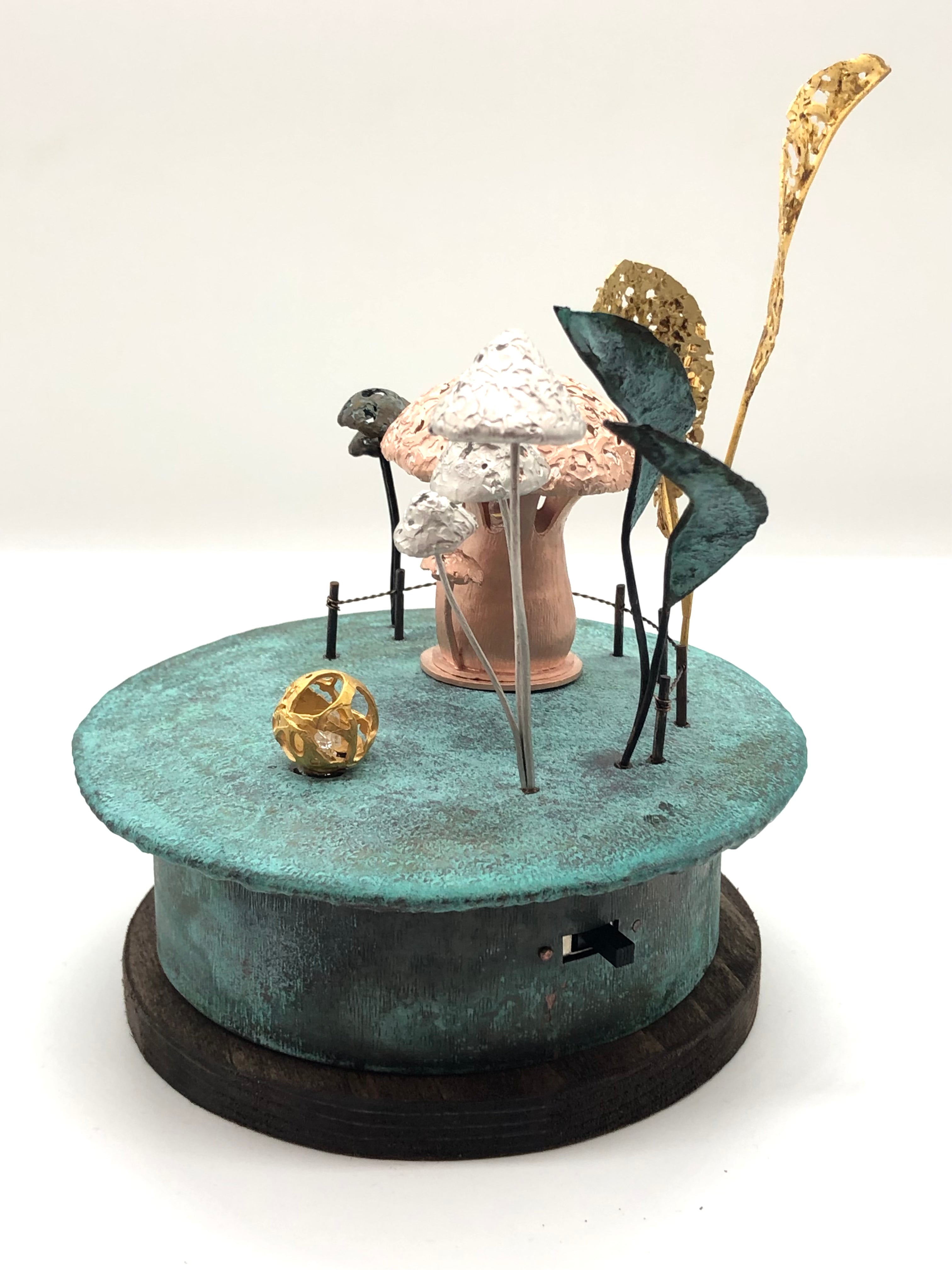 素材:銅、ガラス、木(底板)、LEDx2、単4電池x2、スイッチ
