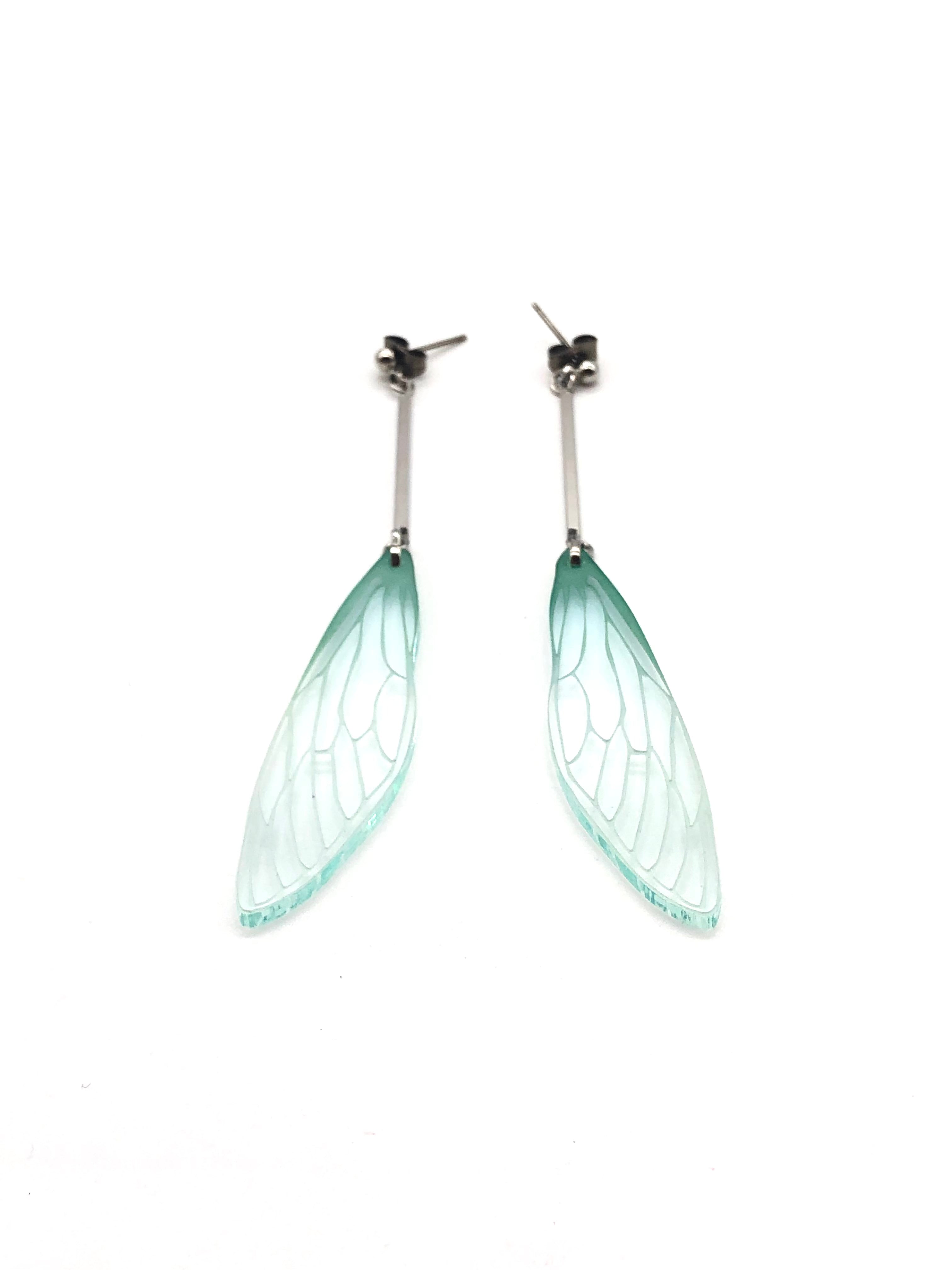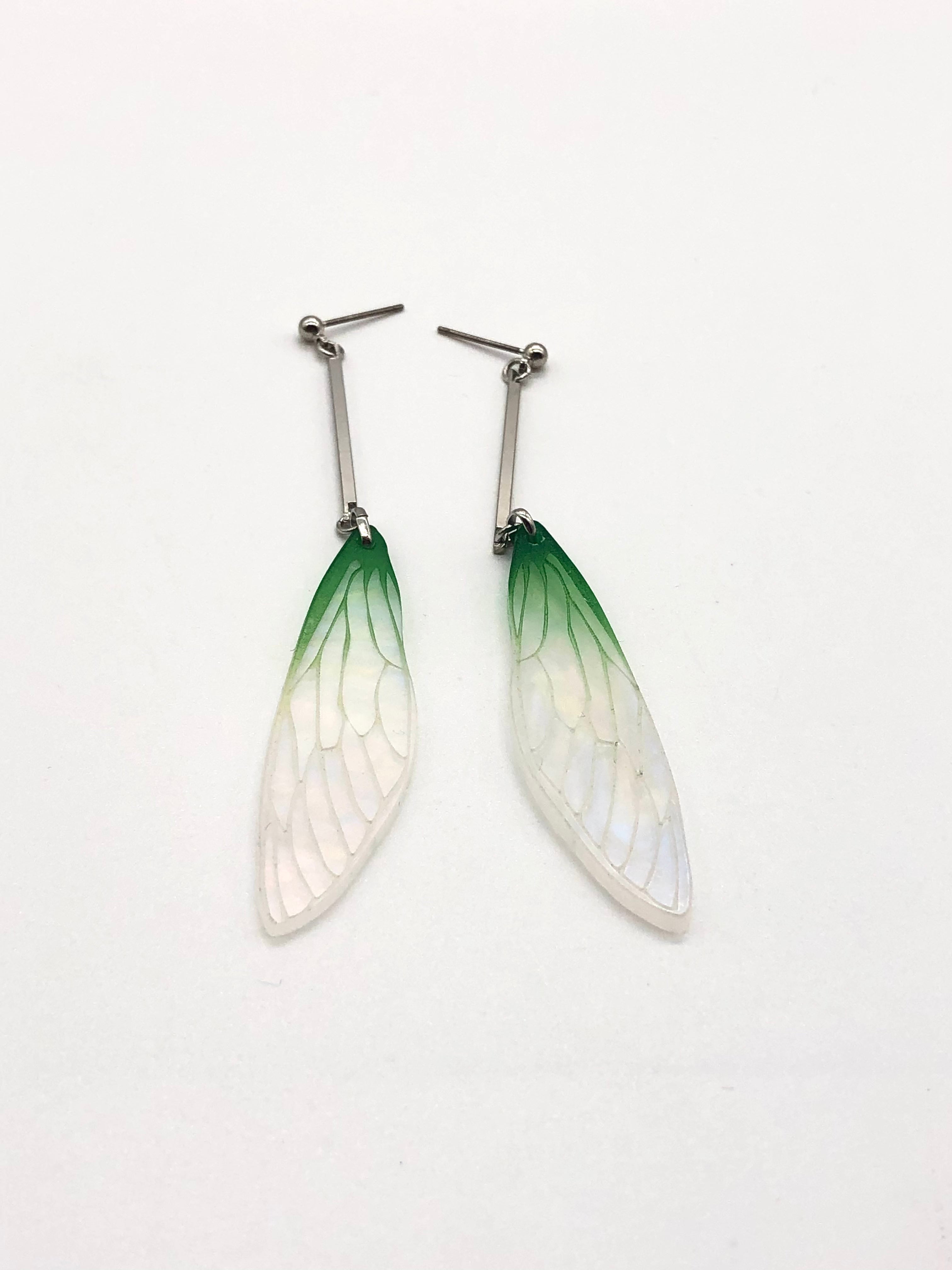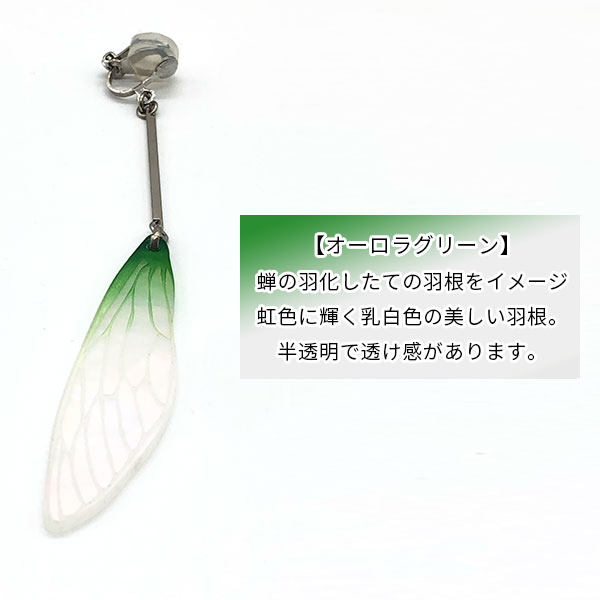風でヒラヒラと舞う、軽いつけ心地の蝉の羽根ピアスです。