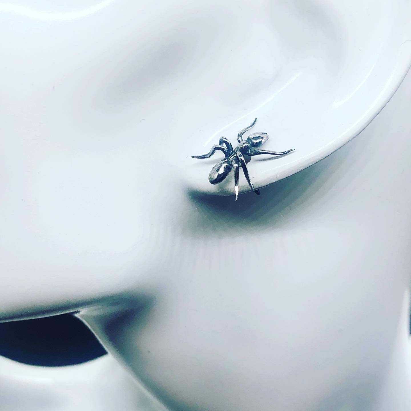 クロオオアリをモデルに制作。 ほぼ、日本全国に生息し、数十年前はいたるところで見かけたが、近年では公園や畑などで都市部ではあまり見かけなくなった気がする。 装着しやすくする為、触覚はつけていませんが大きさもほぼ原寸大なので、着けた際の蟻感はばっちりです。