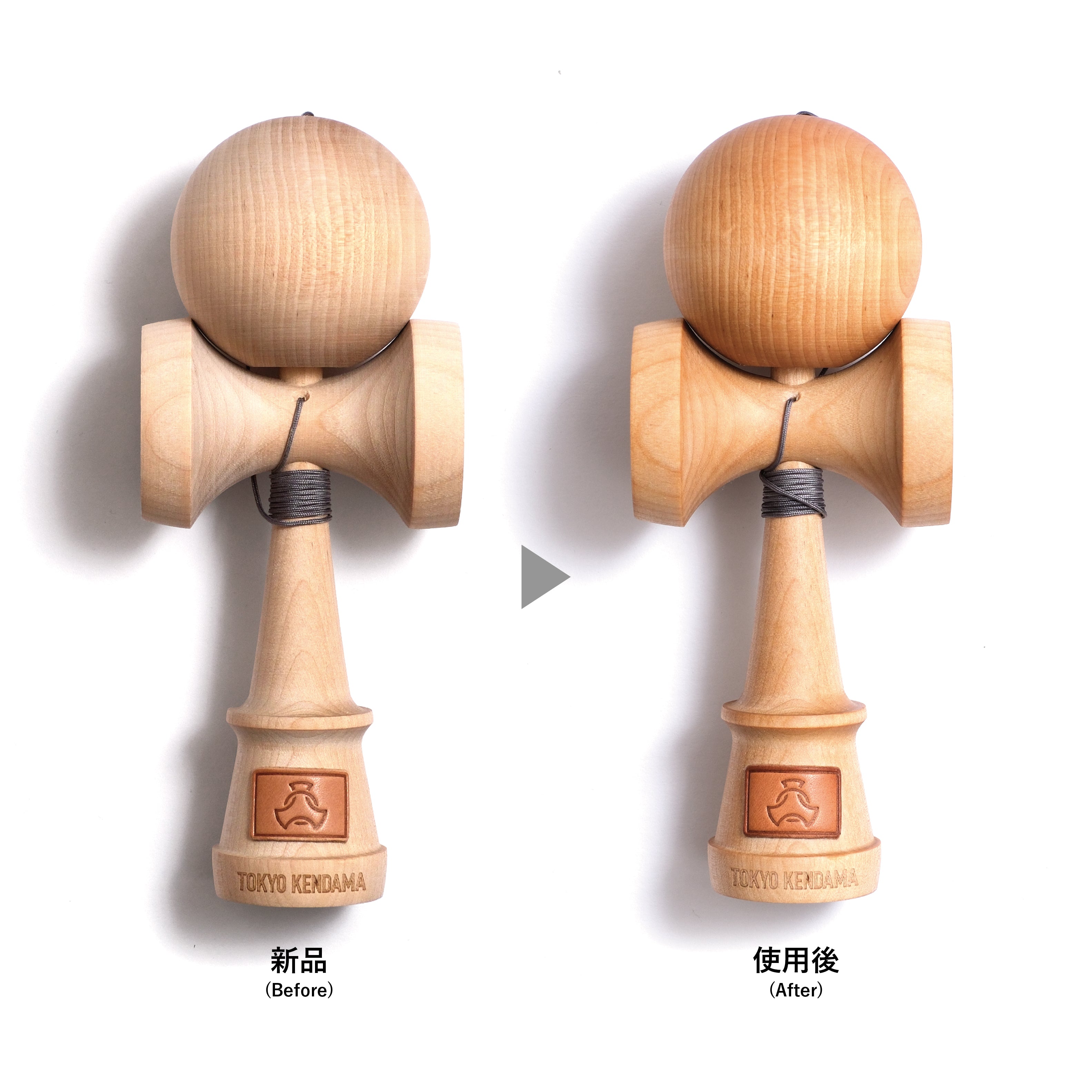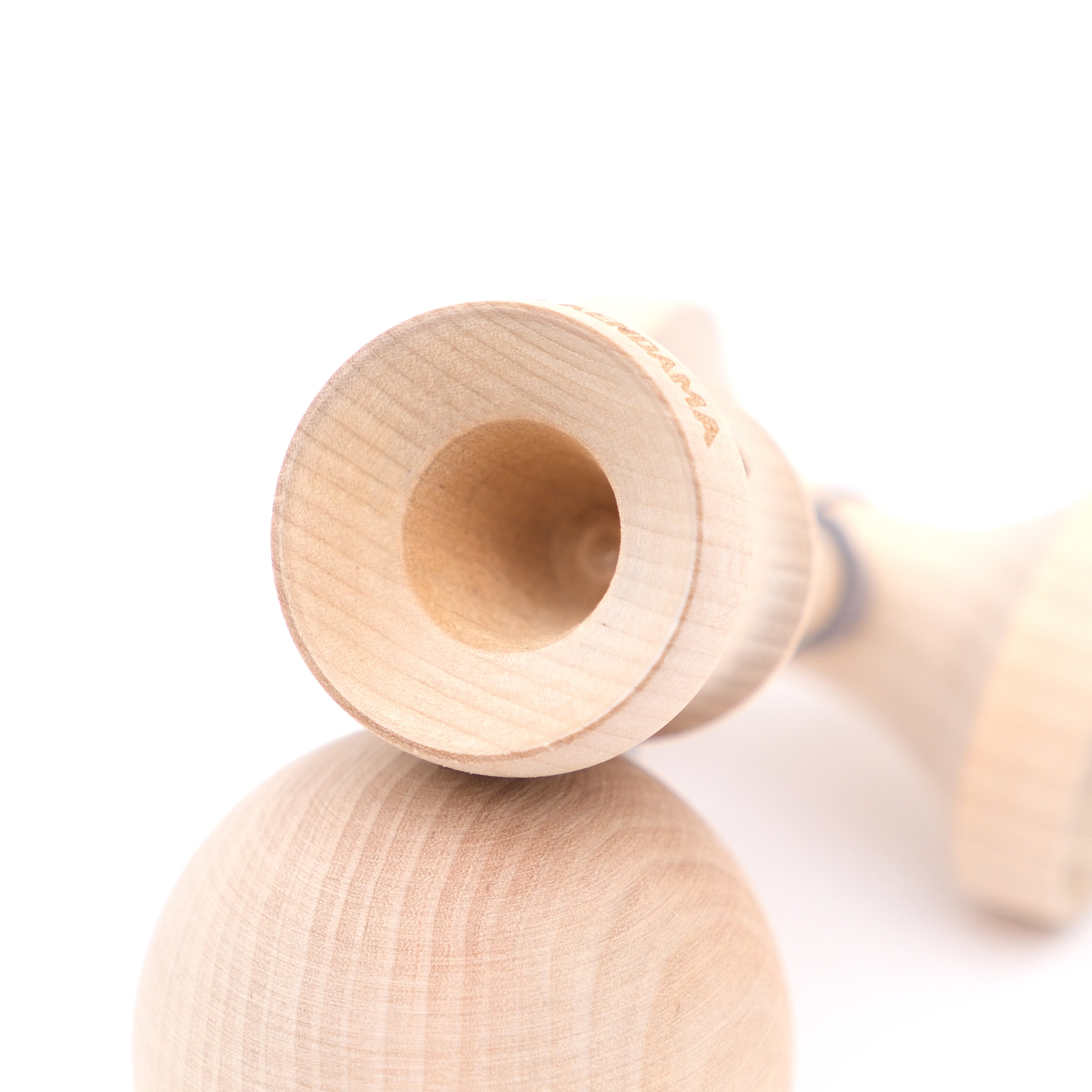 ※表面処理を施していない無垢材削り出しのけん玉になります。ひび割れや変形を防ぐため、直射日光や温風による急激な乾燥は避けて下さい。