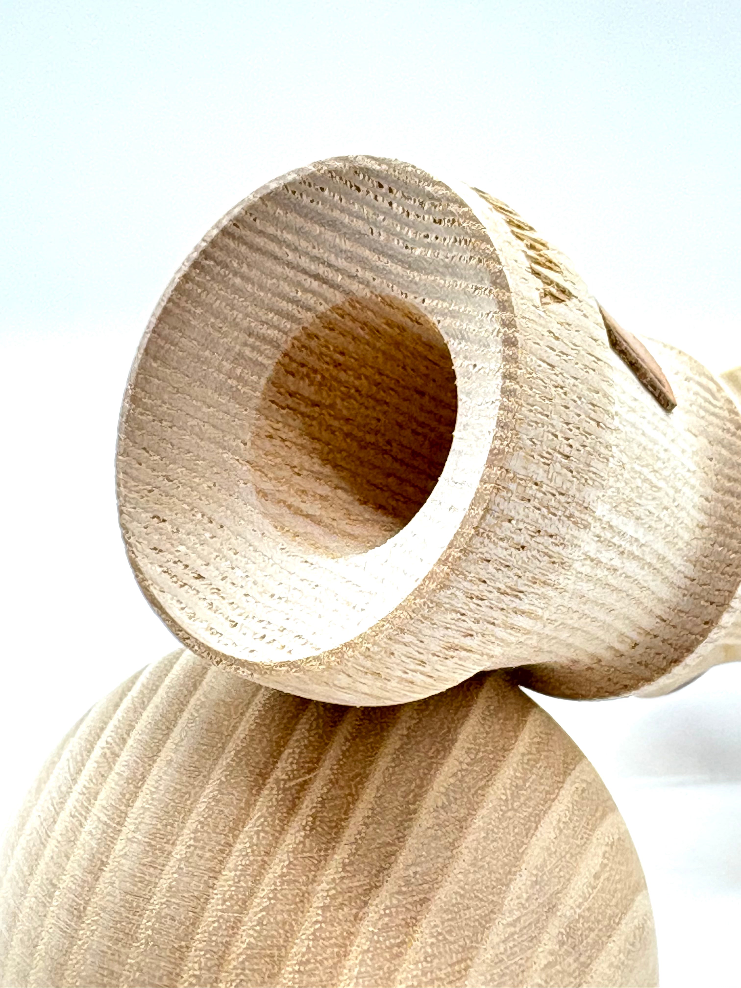 ※表面処理を施していない無垢材削り出しのけん玉になります。ひび割れや変形を防ぐため、直射日光や温風による急激な乾燥は避けて下さい。
