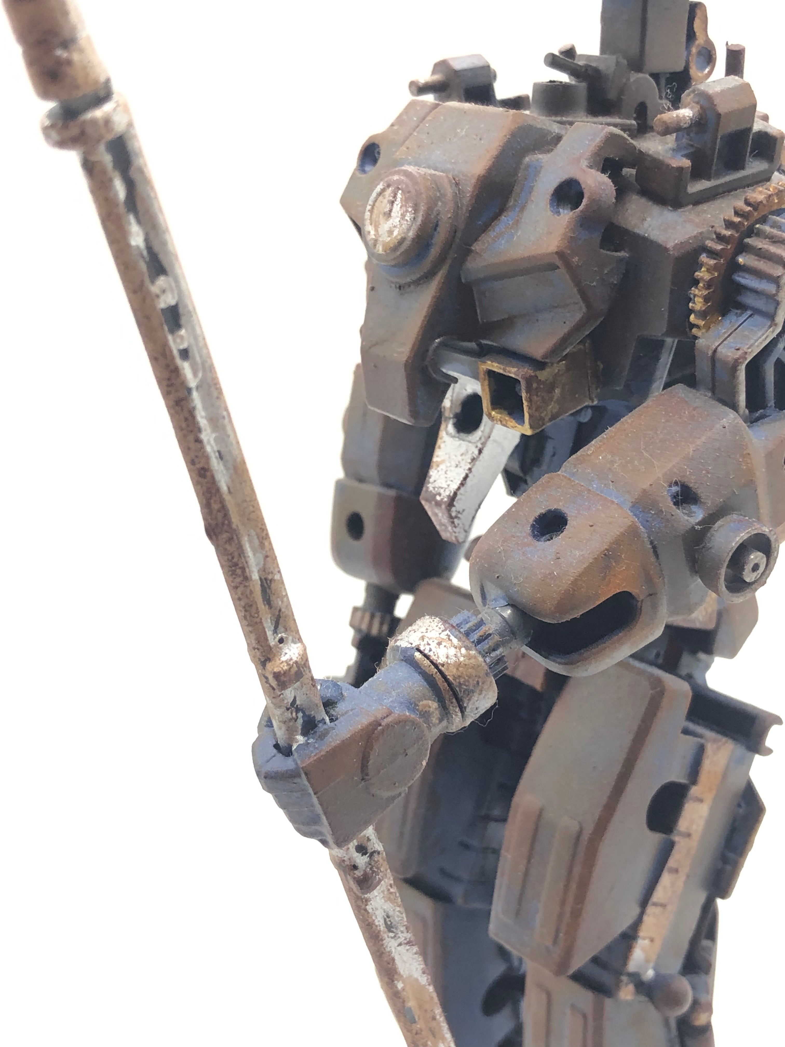 武器を携えた姿勢や、しっかりとした脚部の構造は、「守護者」としてのアイデンティティを暗示しており、見る人に強いメッセージを投げかけます。